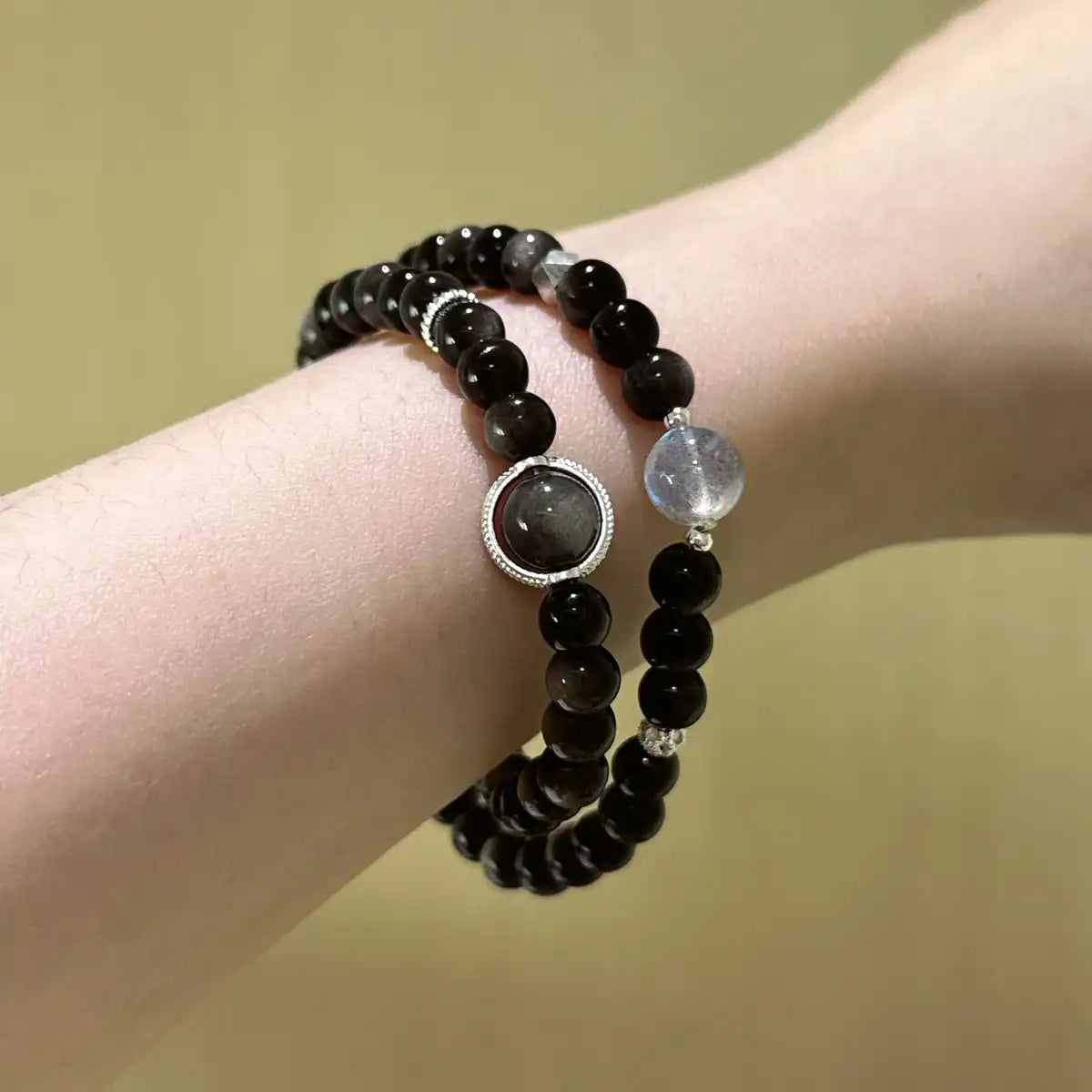 A quietly powerful bracelet that balances grounding protection with moonlit clarity and calm.